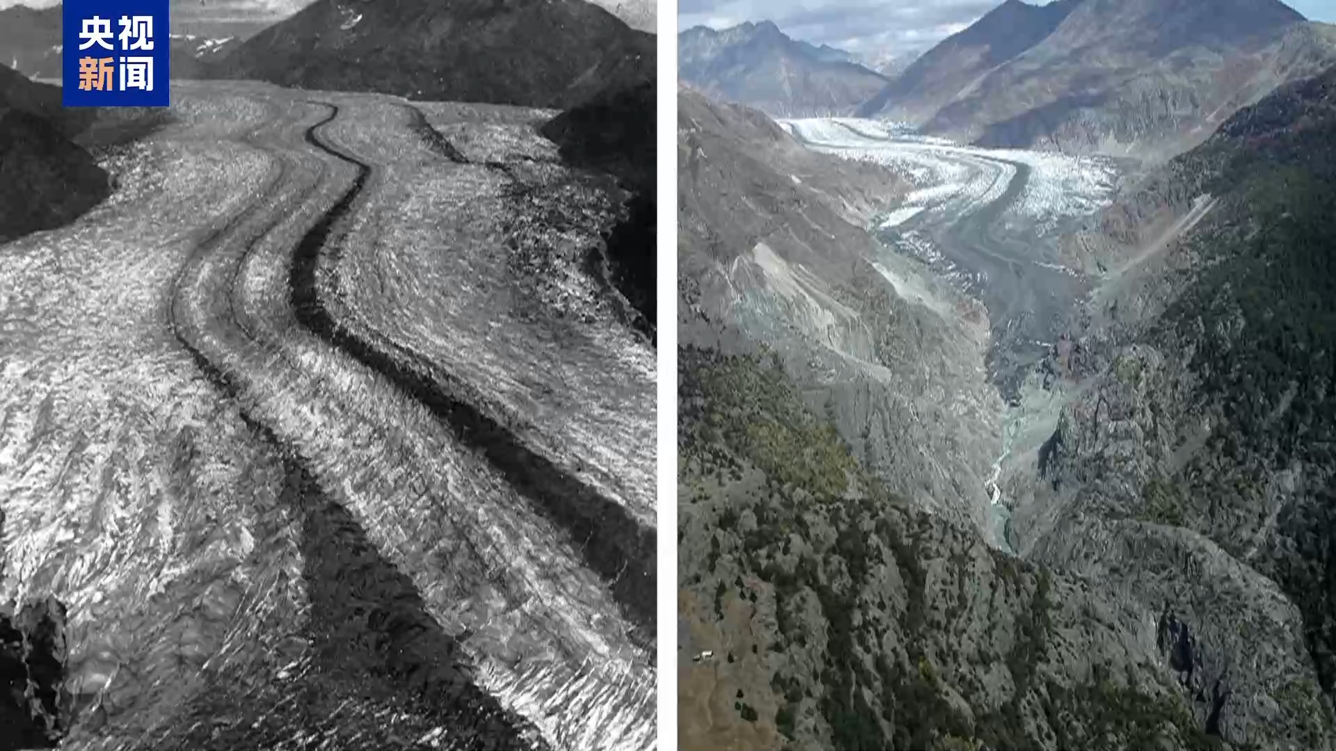 瑞士当地地理学家告诉记者,受气候变化影响的不仅是采尔马特地区的冰川,瑞士冰川融化速度比以往任何时候都快,比如阿尔卑斯山最大的阿莱奇冰川距最高水平退缩了超过三公里。
