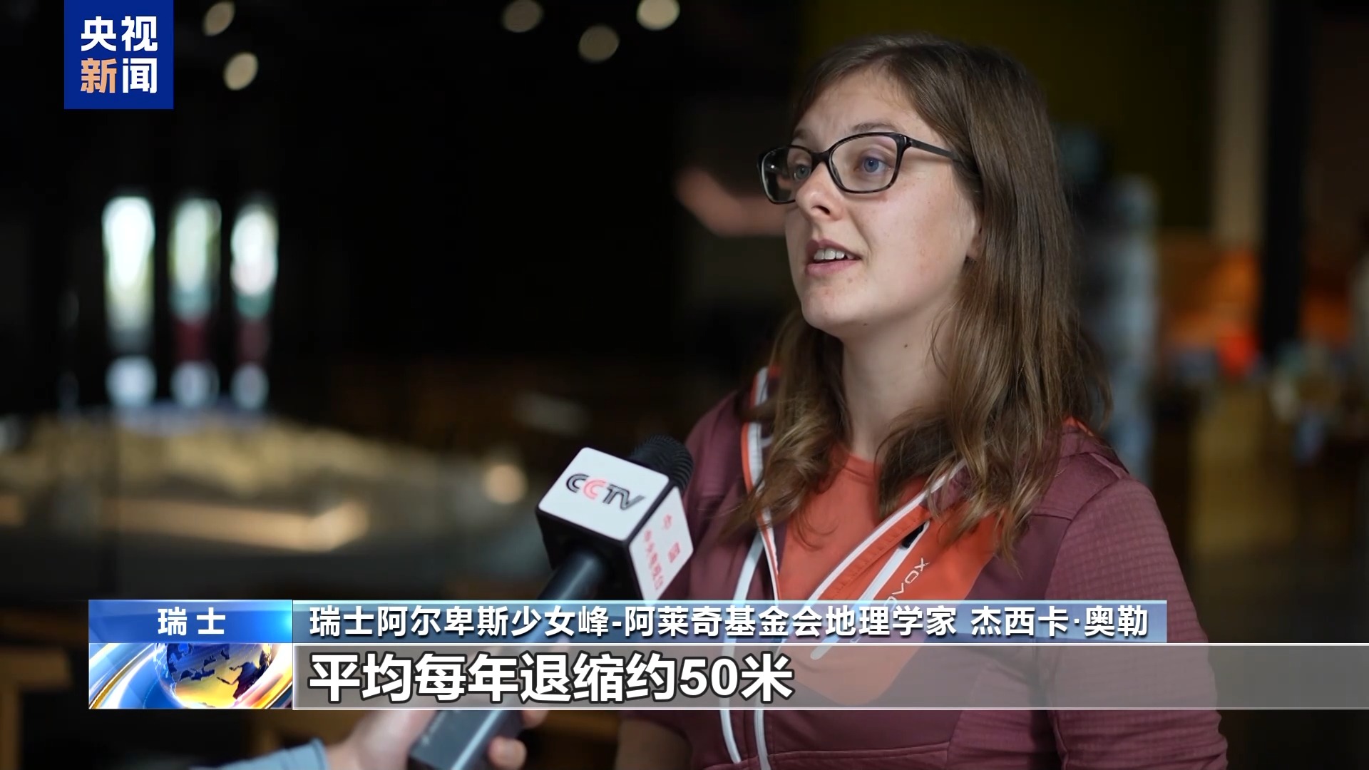 瑞士阿尔卑斯少女峰-阿莱奇基金会地理学家杰西卡·奥勒:过去几年阿莱奇冰川退缩得更快,平均每年退缩约50米。在炎热夏日,每天大约损失10厘米高度的冰川,这是相当大的损失。自1850年以来,阿尔卑斯山地区的温度上升了约2摄氏度,全球范围内温度上升了约1摄氏度,阿尔卑斯山升温速度是全球的两倍,这对冰川产生了影响。