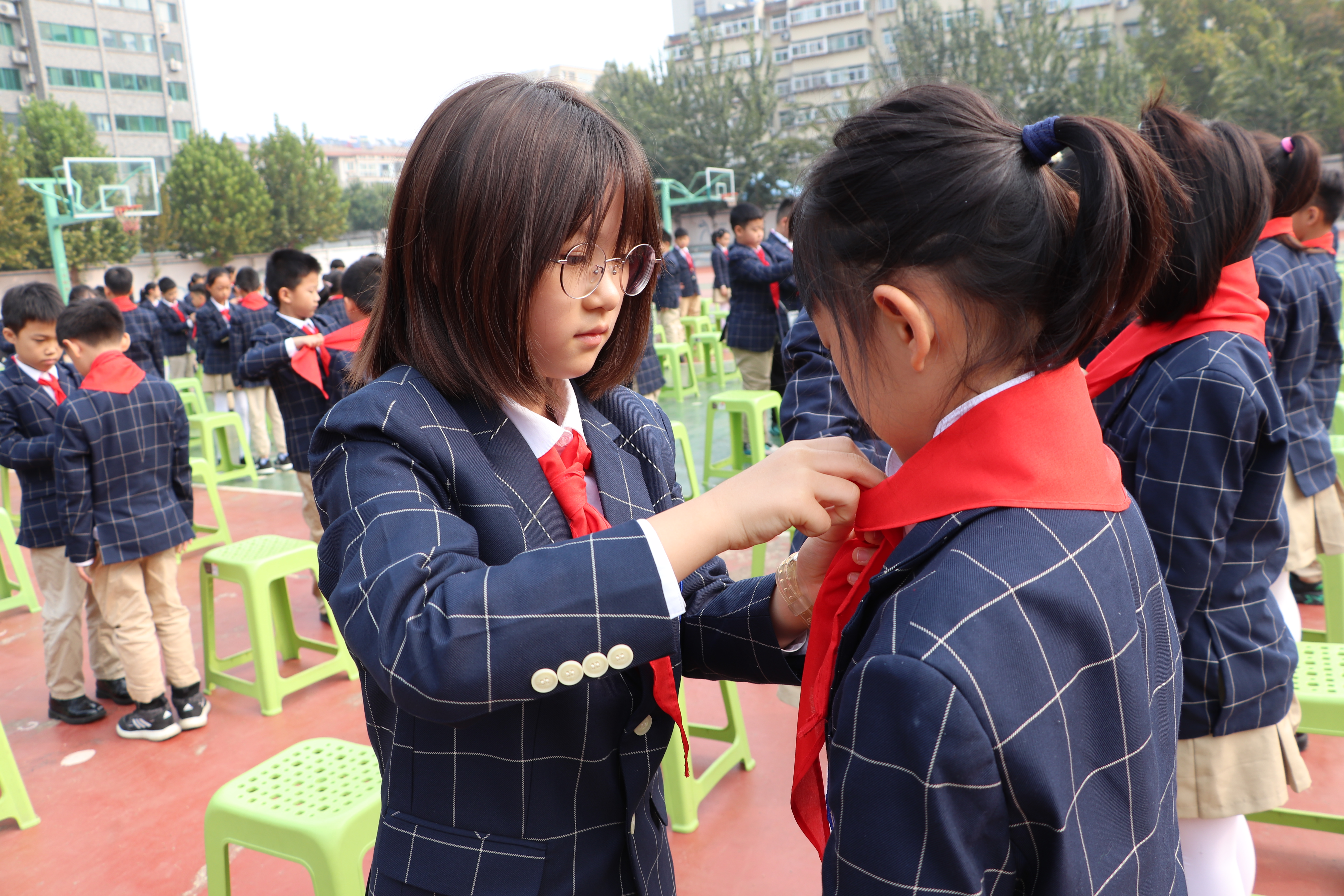 活动中,112名新队员光荣加入中国少年先锋队,他们肩负起了新的使命与责任。党、团、队代表为队员们送上诚挚祝福和殷切希望,带领他们走好“人生政治三部曲”。