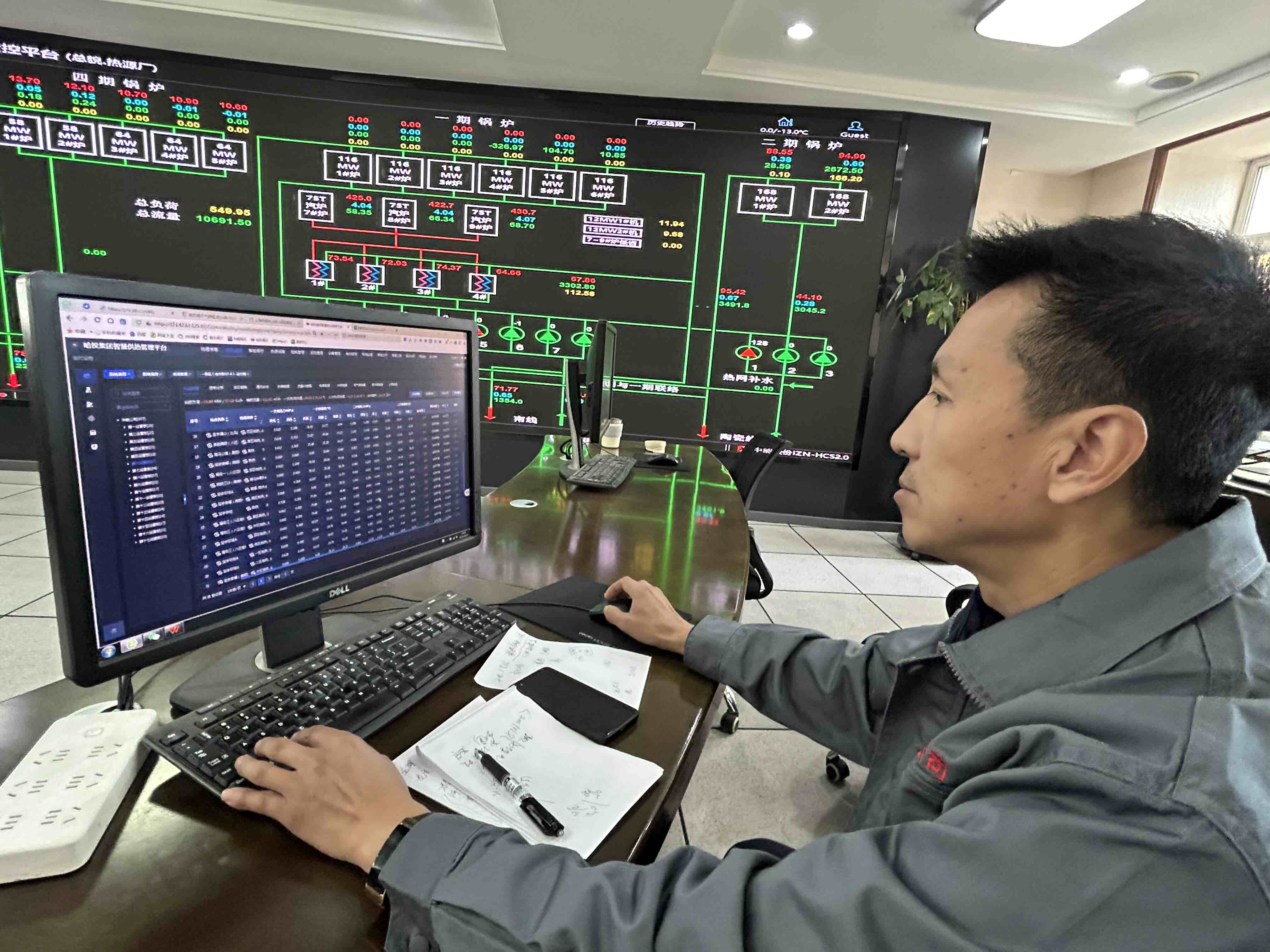 华能集中供热公司主要负责道里区、道外区两个中心城区的供热,服务用户41万余户。记者在生产调度指挥中心大屏上看到,主管网供水温度75℃,回水温度43℃,已达到正常运行参数。