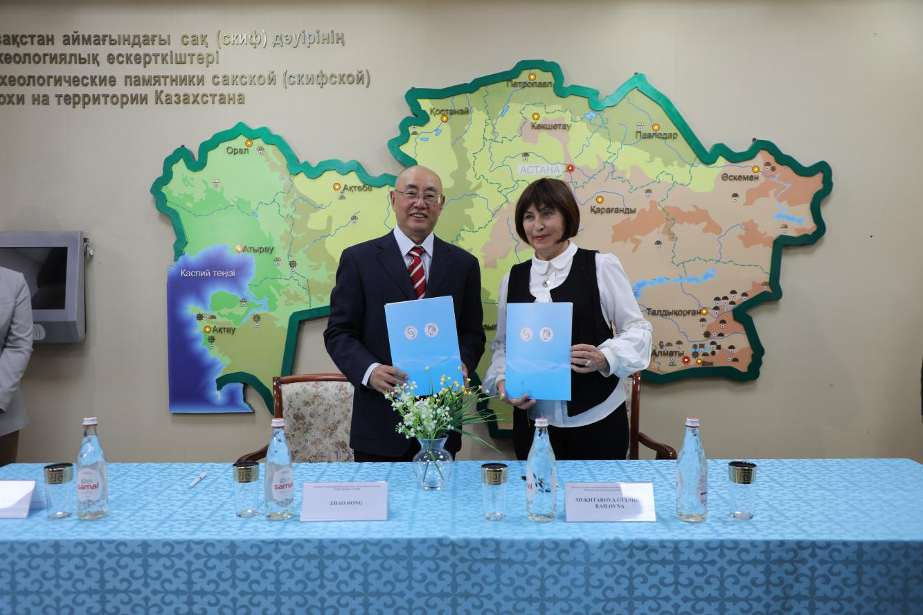 成立大会上,丝绸之路考古合作研究中心主任赵荣与伊塞克博物馆馆长古丽米拉共同签署成立丝绸之路考古研究合作中心伊塞克分中心的协议。