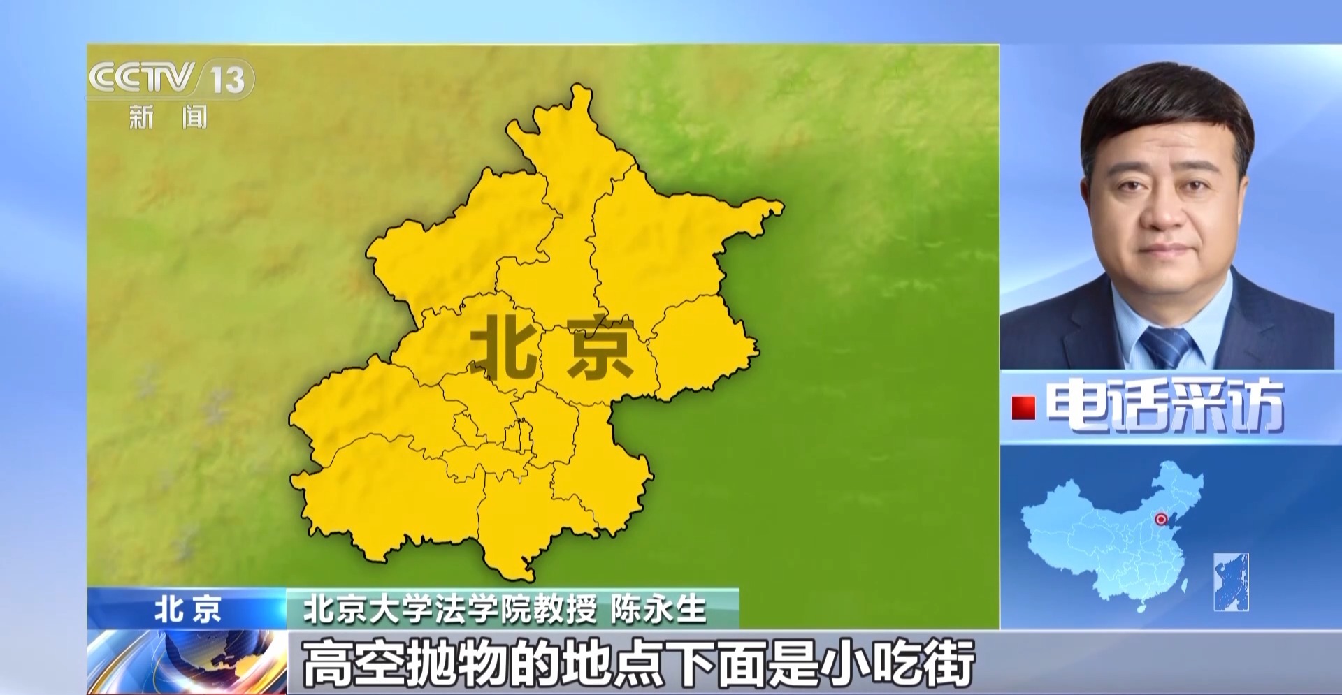 北京大学法学院教授陈永生:在本案中,高空抛物的地点下方是夜市小吃街,人流非常密集。周某在6天时间里,多次从楼房高层向下投掷砖头等物品,而且在案发的这一次,他向楼房下抛掷了8块砖头,危及了不特定的多人的生命、健康。