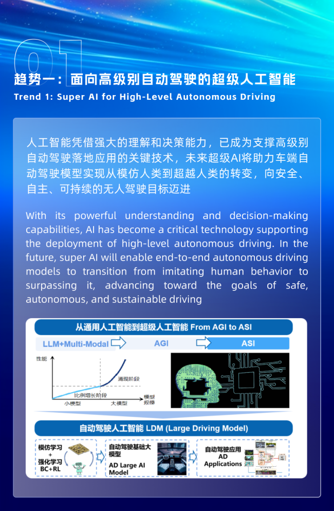 在人工智能和实体经济深度融合的发展方向下,人工智能已经深度融入各产业,渗透进生活。习近平总书记指出:“要加强人工智能同保障和改善民生的结合,从保障和改善民生、为人民创造美好生活的需要出发,推动人工智能在人们日常工作、学习、生活中的深度运用,创造更加智能的工作方式和生活方式。”近年来,新能源汽车产业作为战略性新兴产业,围绕人工智能研发和实践应用,在智能座舱、智能驾驶、智能制造等领域取得重要突破,提升用户驾驶安全性、幸福感、便利度和交通运输效率。