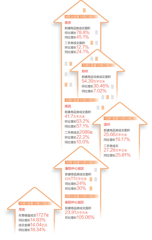 市场活跃态势同样发生在一些三、四线城市。10月1日至22日,温州网签新建商品房25.66万平方米,同比增长19.17%;二手住房交易27.29万平方米,同比增长25.81%。