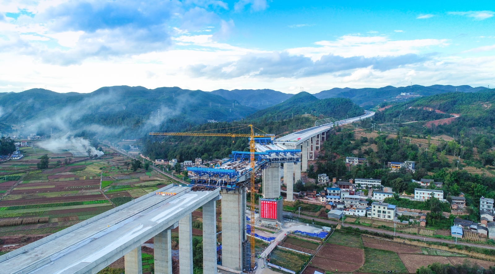 10月24日下午,由云南交投集团投资建设的国内最高墩中转体桥——姚安至南华高速公路大谷堆大桥完成转体施工,实现精准对位。