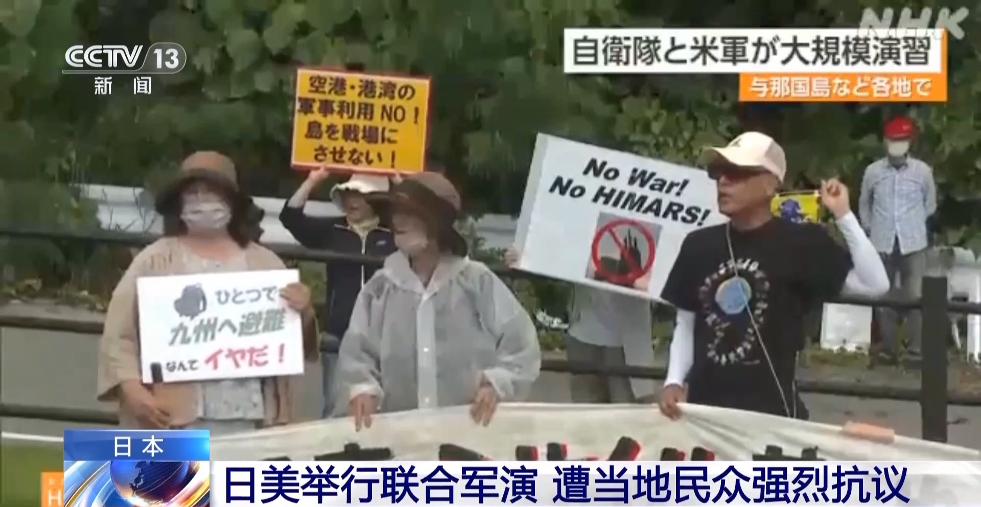 日本广播协会电视台23日报道称,当天在冲绳县石垣岛的日本陆上自卫队驻地外,当地居民举行集会抗议活动。参与集会的民众打出 “石垣岛不需要军事基地” 等标语,称日美把该岛当做战场进行演习,不仅威胁当地民众生命安全,还会导致地区局势紧张。