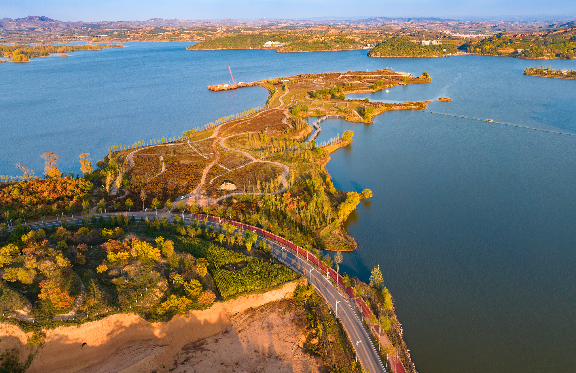 山西榆社云竹水库,秋季美轮美奂。作为灌溉、防洪、发电、养鱼、旅游多功能水利工程,它更是自然与人文景观的瑰宝。