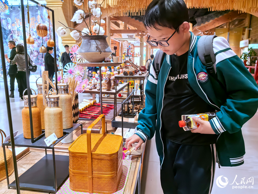 游客观赏“只有河南·戏剧幻城”的非遗展品。人民网记者 王佩摄