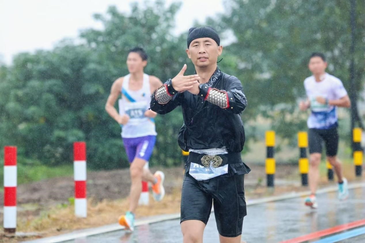 本届比赛中,不少参赛选手身着武侠服饰,在赛道上尽情奔跑,仿佛置身于金庸先生笔下的武侠世界。来自本地的参赛选手徐泉洪表示,自己非常喜欢金庸的小说《鹿鼎记》里的主角韦小宝,“他的人物性格一直影响着我——人生要快乐,快乐生活,快乐工作,快乐健身,快乐比赛。”