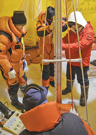 科考队员在打钻。 |