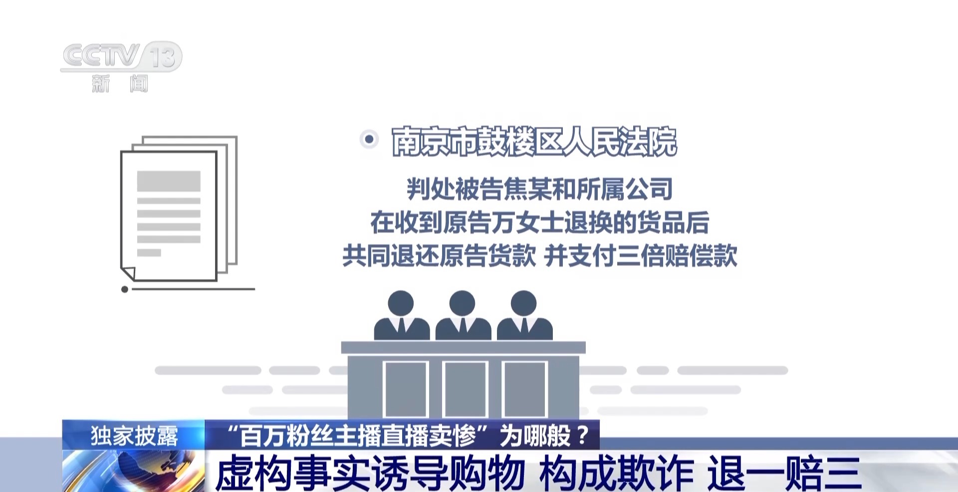 2023年3月,南京市鼓楼区人民法院一审判决,被告焦某和所属公司在收到原告万女士退换的货品后,共同退还原告货款,并支付三倍赔偿款。同时,被告焦某还需在判决生效后,在短视频平台发布向原告万女士的道歉声明。2023年7月,法院二审维持了原判。