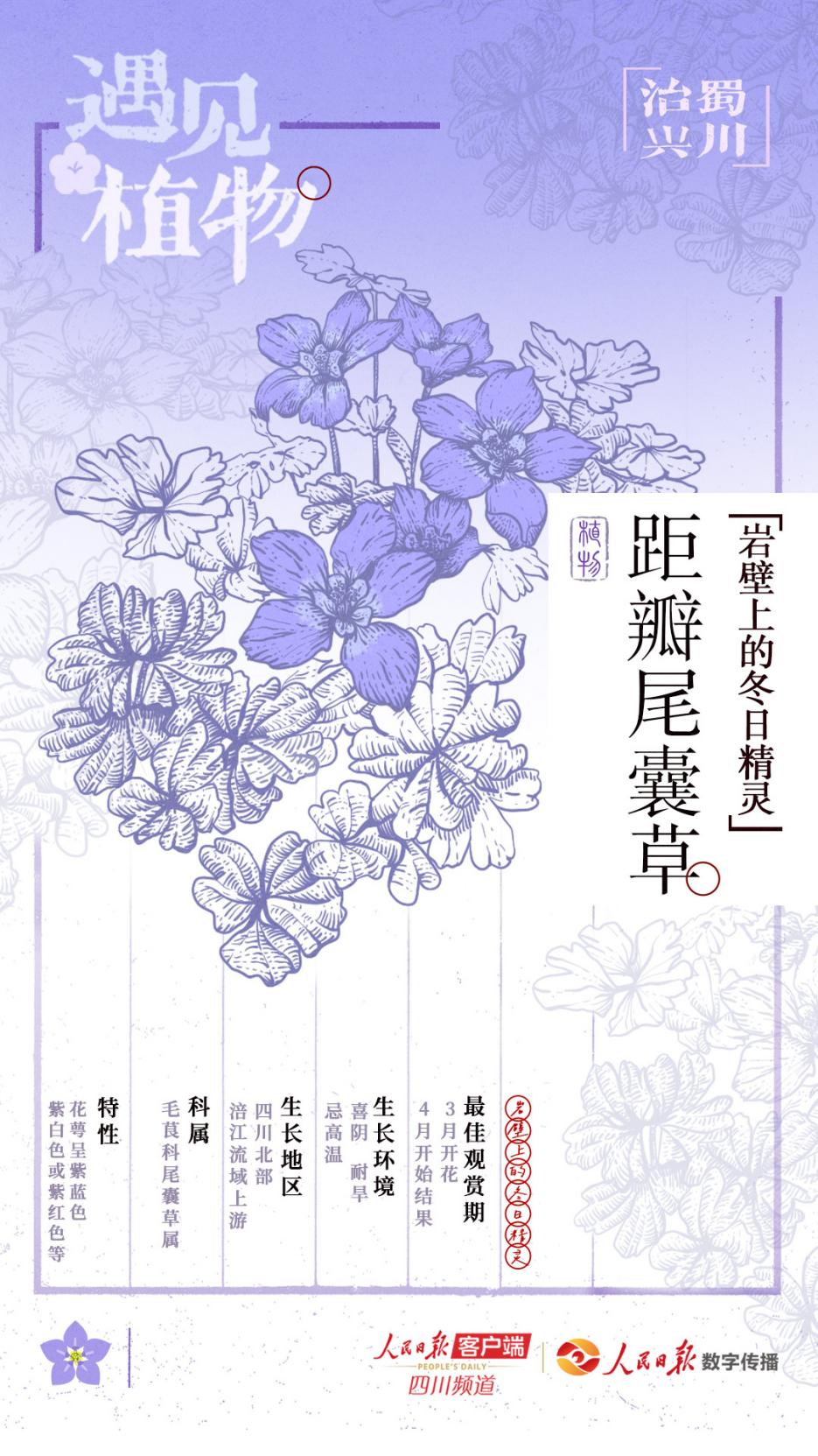 草木葳蕤,花香氤氲,珙桐花在枝头开放,飞过冰河纪的“白鸽”诉说着对和平的向往;走向世界的蜀葵展现出独具四川标识的美丽,成为中国植物界中“一带一路”的见证者;距瓣尾囊草在陡峭的悬崖上延伸出一片新绿,绽放天蓝色的花朵,骄傲地展示着生态文明建设的成果……