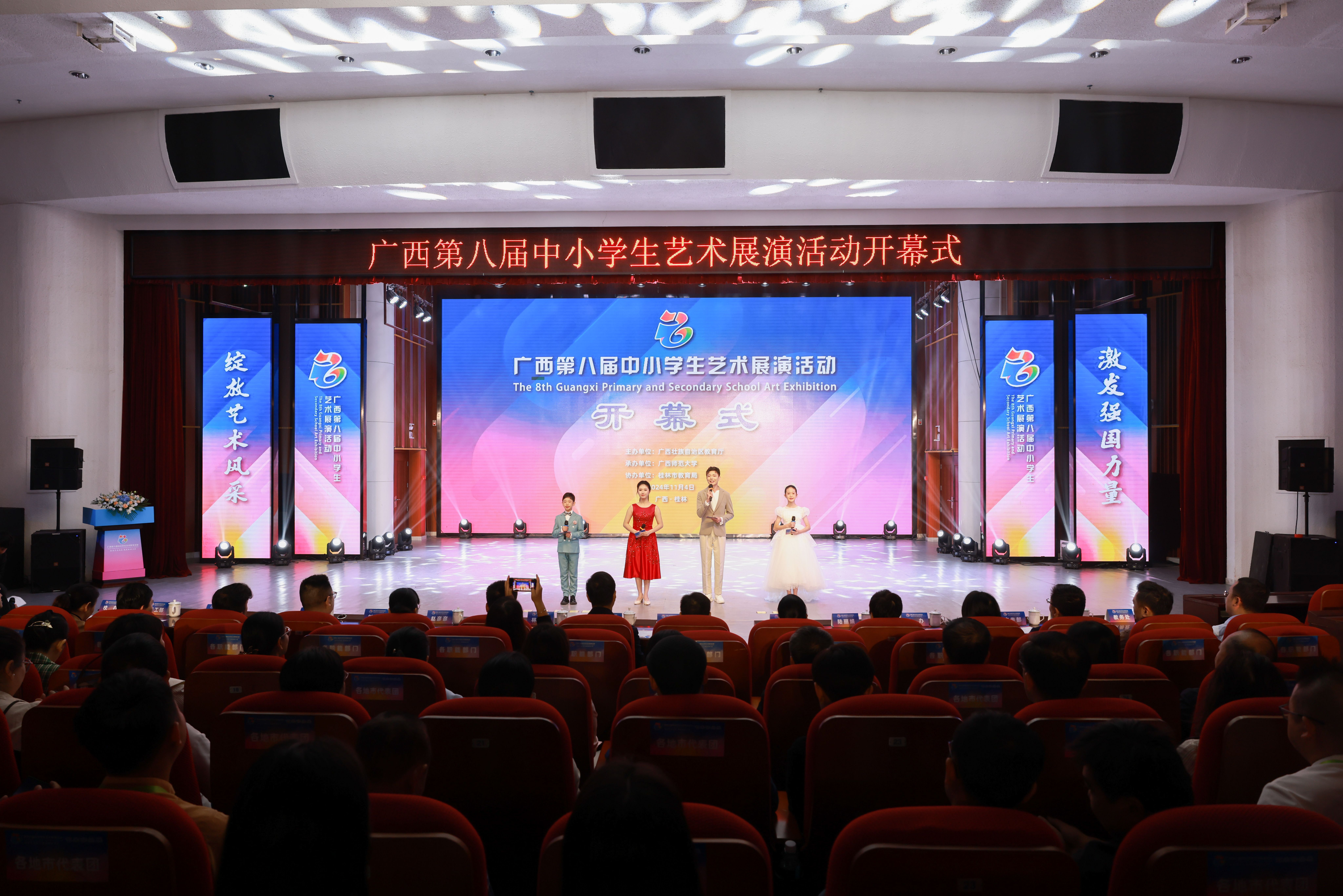 11月4日,由广西壮族自治区教育厅主办的广西第八届中小学生艺术展演活动在广西师范大学雁山校区开幕。展演活动以“绽放艺术风采、激发强国力量”为主题。据了解,广西中小学生艺术展演活动每三年举办一届,旨在展示全区中小学校艺术教育成果,展现全区中小学生的艺术才能和创造能力。