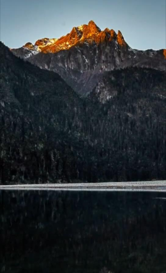 雪山与湖水共影,水天一色同时上演“日照金山”