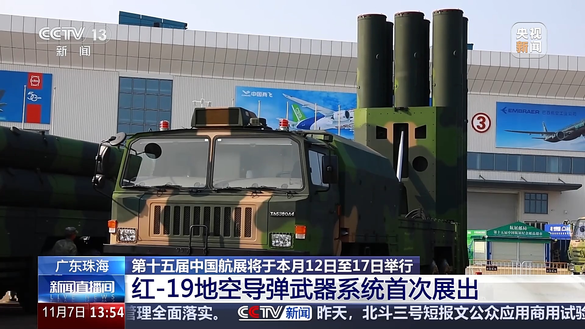 在本届中国航展上,中国空军以更加开放的姿态亮相,首次展出了红-19地空导弹武器系统、新型察打一体无人机等一批新装备。专家表示,红-19已经达到了国际先进水平。