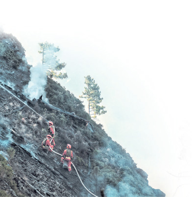 “跟我走!”带领党员突击队,谢孳向背起二三十公斤的灭火装备就往里冲。他们负重冲刺爬坡近800米,荆棘丛生没有路,就用身体压过去。80多度的陡坡,谢孳向拽着水带就往下跳,追着火头跑,“那时候没时间想个人安危的问题,只想快速安全地把火灭了。”一个半小时的抢攻战赢了,突击队员个个浑身湿透。
