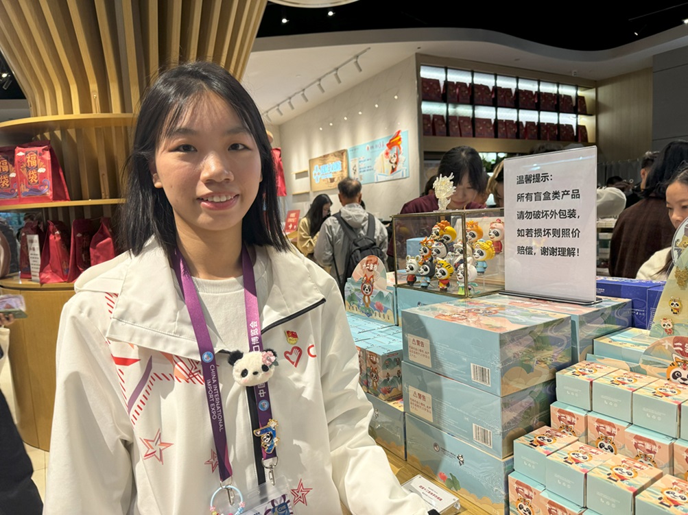 “冰箱贴在哪个展柜?”“盲盒生肖可以自己选吗?”进博会现场,宣传进博文化的国展文创馆大受欢迎,展柜旁,黄倩仪微笑着回答参观者络绎不绝的提问。已在上海工程技术大学就读研三的她说,这是自己最后一次以“小叶子”身份来到“四叶草”了,“有收获,也有不舍。我在进博会上见到了那么多的最新技术和亮点,也认识了那么多的朋友,感觉进博会就是我们‘小叶子’的‘国际朋友圈’。”