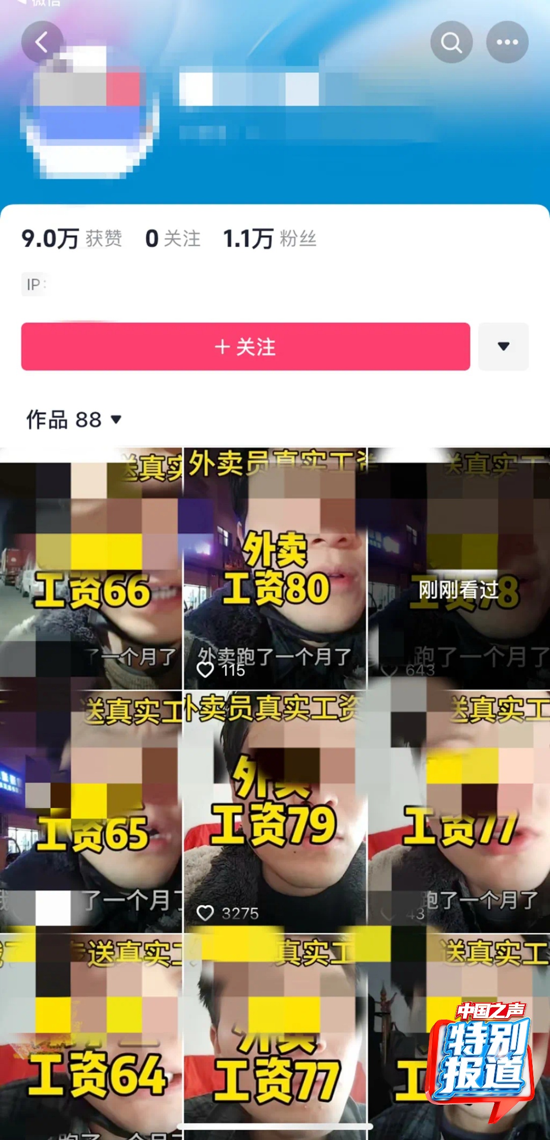 倪中锦:视频的具体内容就是一个工资条,他一一解说这些工资条的内容。比如说基本工资是多少钱,绩效是多少钱,扣费是多少钱,这些工资条全都是他自己用excel软件编辑的,全部都是虚假的,包括它里面的美团的站点都是不存在的。他这大部分视频是几万的播放量,在网络全平台进行投放,最大的应该是播放量八九千万次,最多的一条评论大概有千把条。
