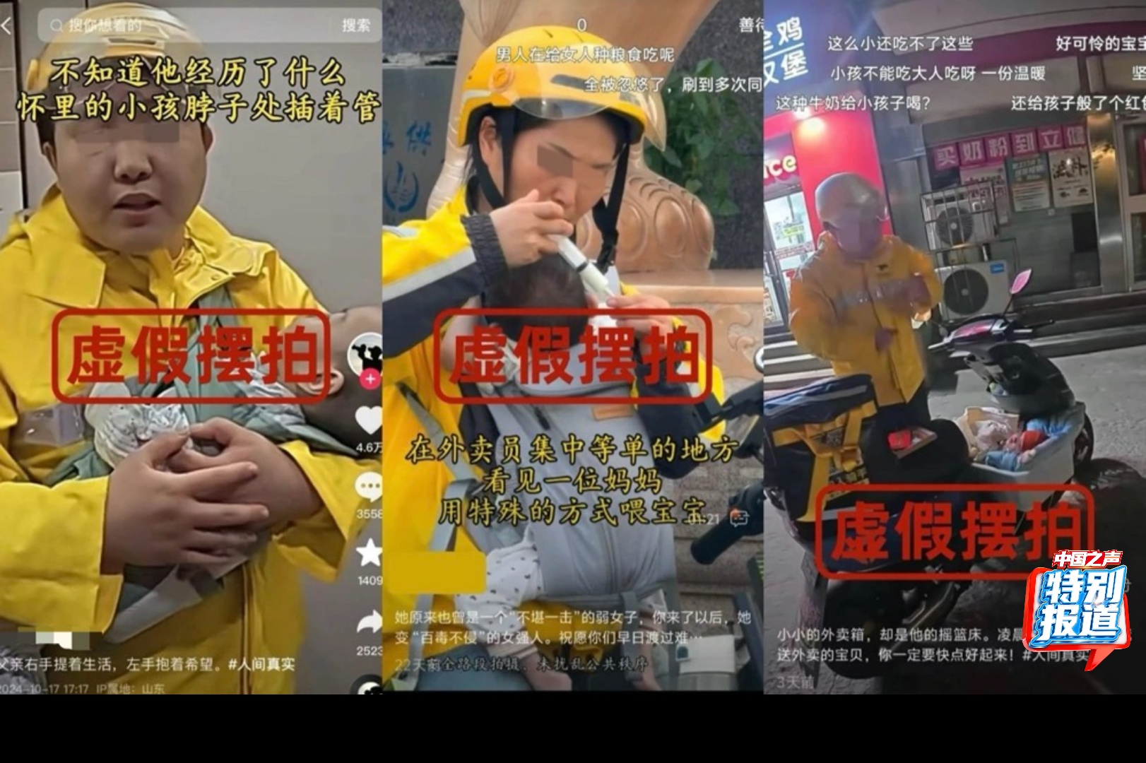在社交平台上,大家经常会刷到各种题材的短视频,比如以外卖小哥为主角的内容中,有记录工作日常的、拍摄跑单趣事的,还有一类相信不少人也刷到过——外卖小哥与顾客发生争吵或者带着重病的孩子跑单的心酸记录。海量视频中,有一些真实展现了这份职业的汗水与辛劳,但其中也不乏为博人眼球、骗取流量,假扮骑手拍段子的视频。今年以来,已经有多地警方查处此类虚假视频吸粉引流的案件。这些假视频给真骑手带来了哪些困扰?如何对虚假短视频进一步加强监管?