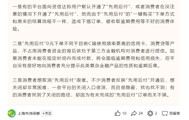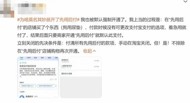 近期纷纷默认开启“先用后付”功能