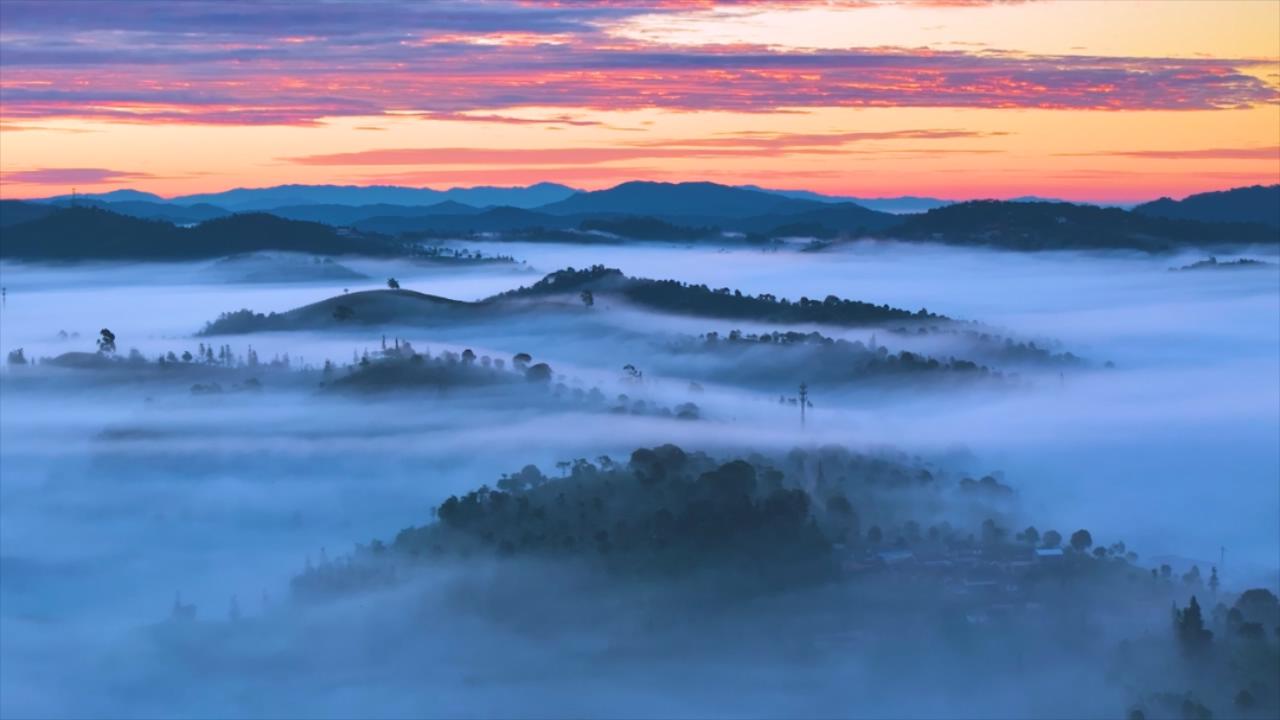 11月10日清晨,第一缕阳光还未洒向大地,一架无人机腾空而起,记录下了云南省普洱市思茅区倚象镇茶山令人惊叹的绝美画面。