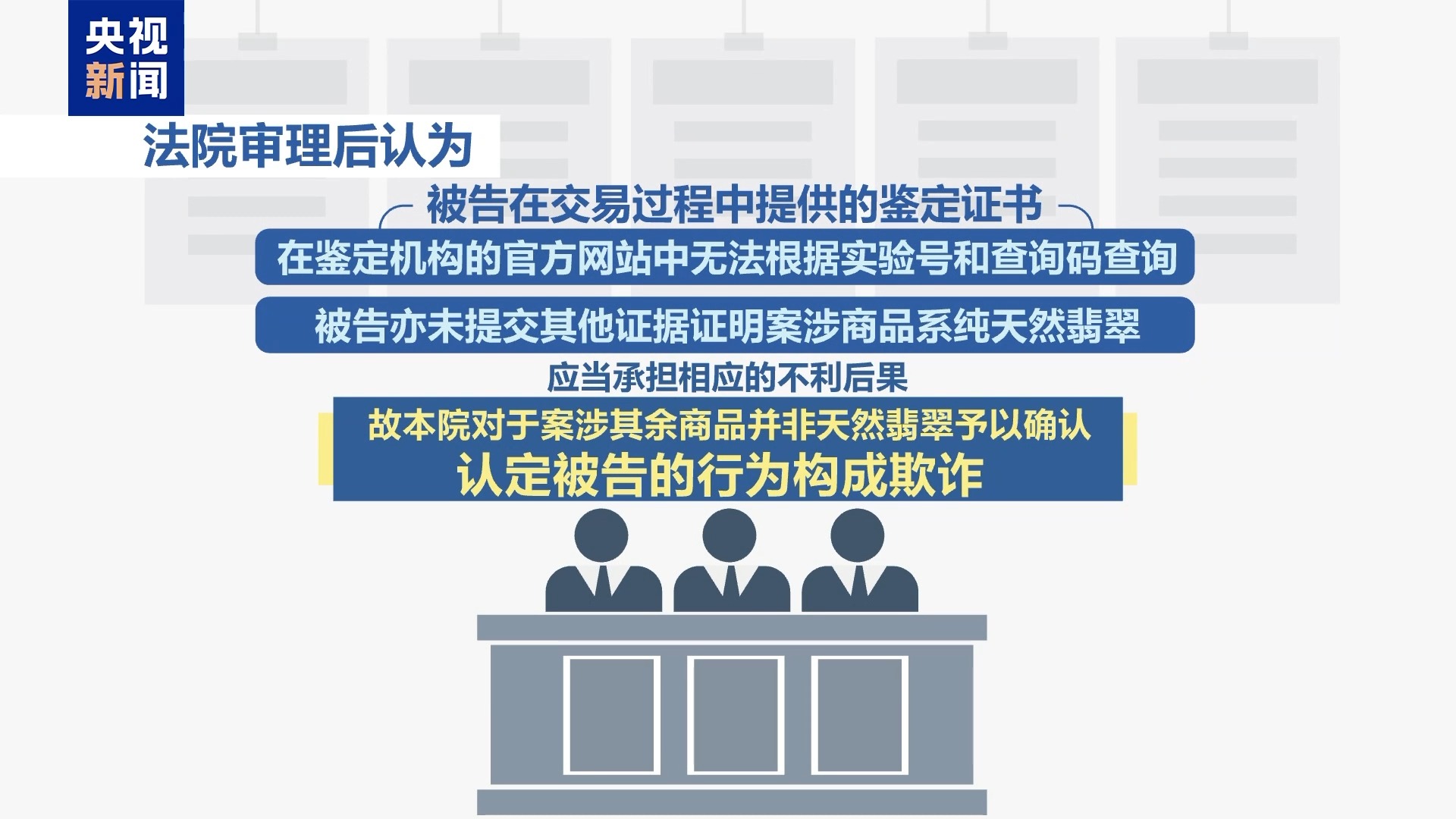 杭州互联网法院法官助理 黄应康:被告辩解称他们销售的就是人造翡翠,证书也是为了方便消费者送礼用的。