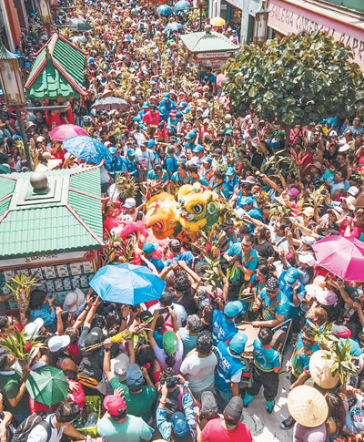 如今,舞龙舞狮已融入秘鲁社会。每年中国春节,醒狮团都会在唐人街游行表演,喜庆的锣鼓振奋人心,龙狮献瑞带来欢乐祥和。秘鲁民众走上街头,手持他们称为“中国竹子”的转运竹,簇拥在龙狮周围,争相看一看、摸一摸,希望沾上喜气与幸运——这已成为秘鲁一大民俗。在秘鲁人的婚礼上,舞狮已成为一种时尚。
