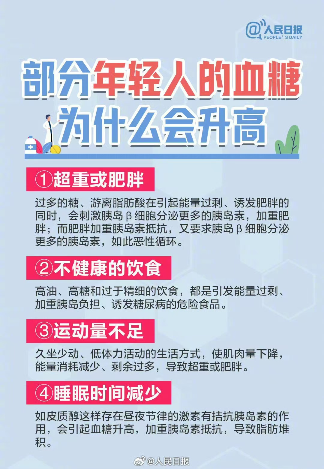 糖尿病是一种代谢性疾病,专家提示,包括儿童、青年人在内的任何年龄都可能得糖尿病。哪种信号提示你已经被糖尿病“盯上”?为什么有的年轻人血糖会升高?明天是联合国糖尿病日。收藏提醒↓↓