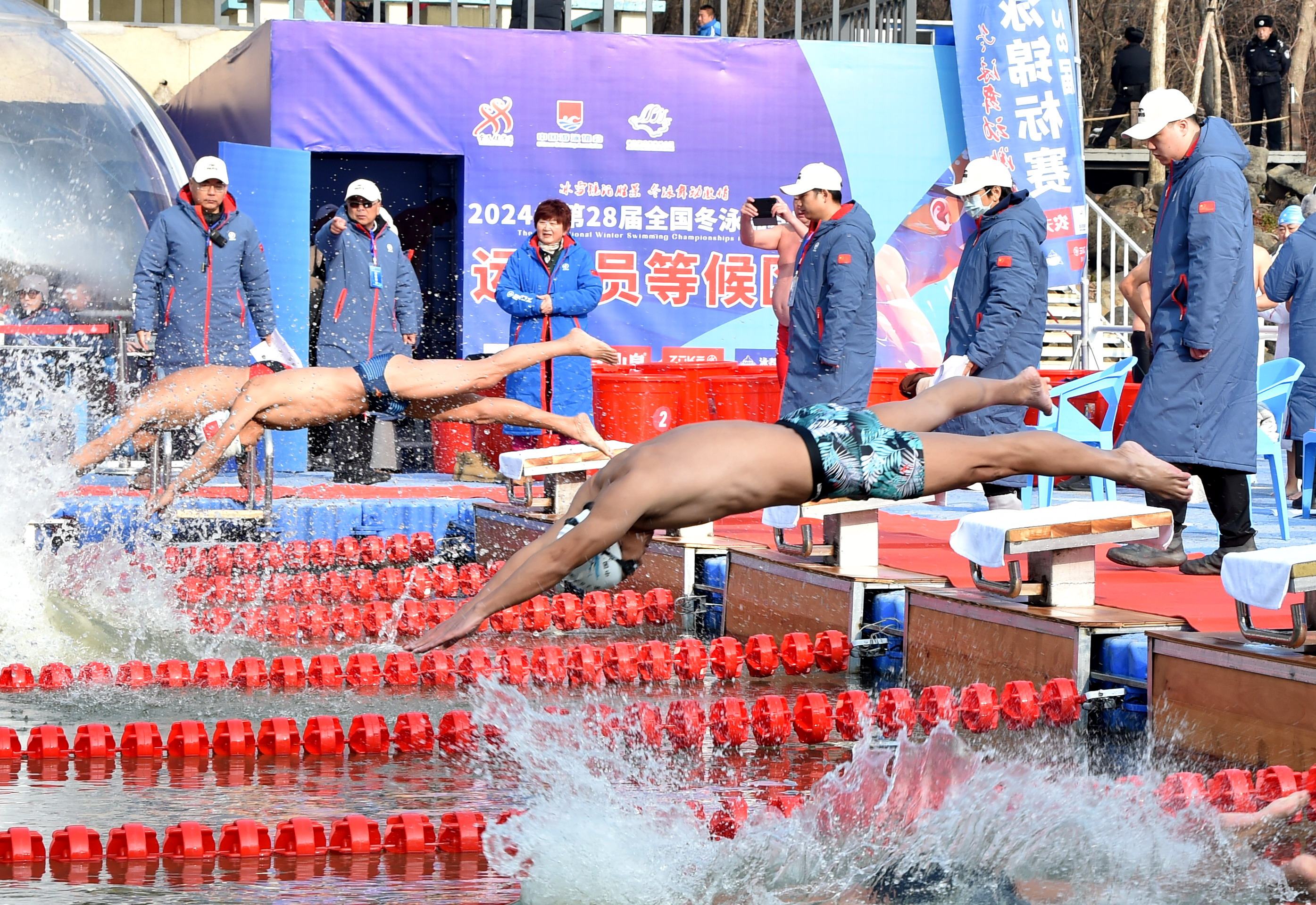 泳池边设有取暖更衣的泡泡屋、暖帐篷,还有专业的救护团队保驾护航……热情周到的服务让选手们心里热乎乎的。“赛事筹备得很用心,从设施到服务,在冬泳赛事里都是一流的。”新疆乌鲁木齐红山冬泳协会领队鲍荣庆为赛事承办方竖起大拇指,“不远千里来牡丹江市参加比赛是值得的,今后有机会还要再多来几次!”