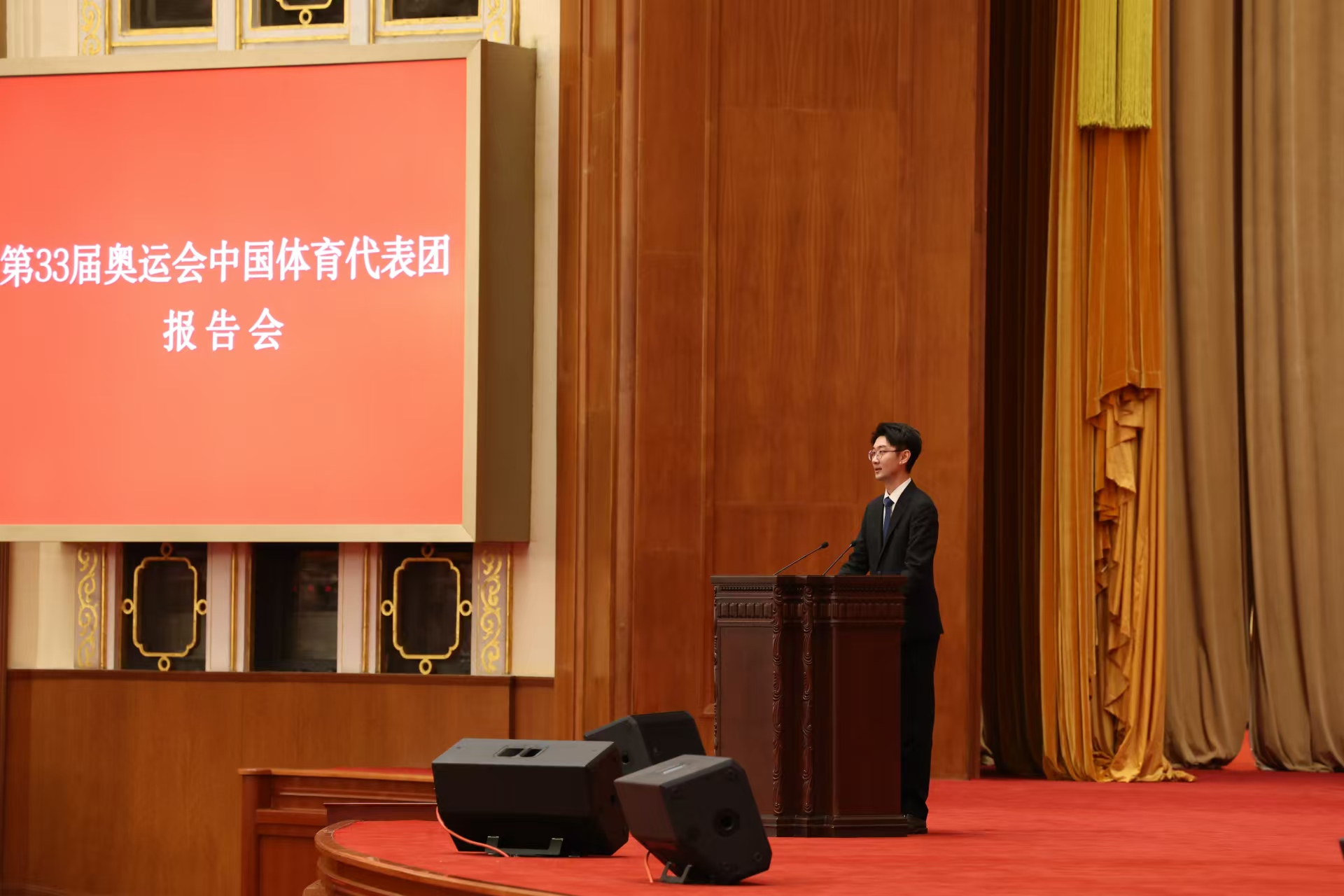在报告会上,运动员黄雨婷、刘焕华、潘展乐、曹缘、张雨霏、马龙和教练员张建伟,以及人民日报社体育部记者孙龙飞,分别结合自己的亲身经历,生动讲述了中国体育代表团在巴黎奥运会上为祖国和人民赢得荣誉的奋斗历程,深情回顾了中国体育健儿拼搏奉献、绽放奥运的光荣时刻。