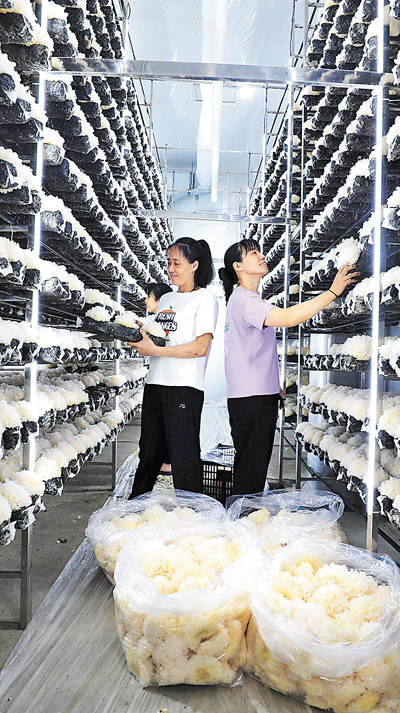 村民在下党食用菌生产基地工作。吴苏梅摄