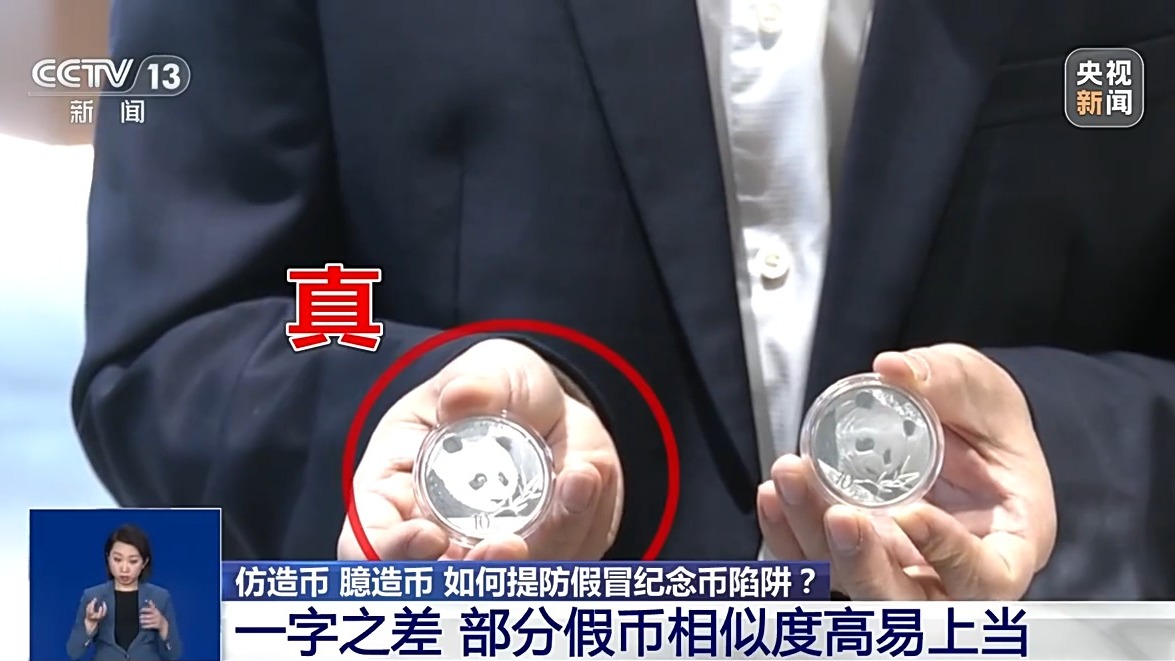 熊猫金币是不少消费者喜爱的一种收藏品,但是您看这枚熊猫金币上,有什么不同吗?从外形上看,无论大小还是图案都符合正规标准,但是业内人士告诉我们,这是枚假币。