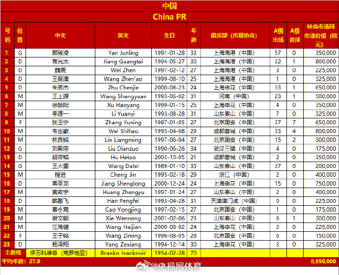 北京时间11月19日晚20:00,18强赛第6轮国足在厦门迎战日本,赛前国足公布23人大名单。