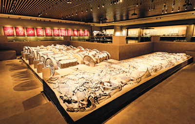 春秋时期赵卿墓车马坑。