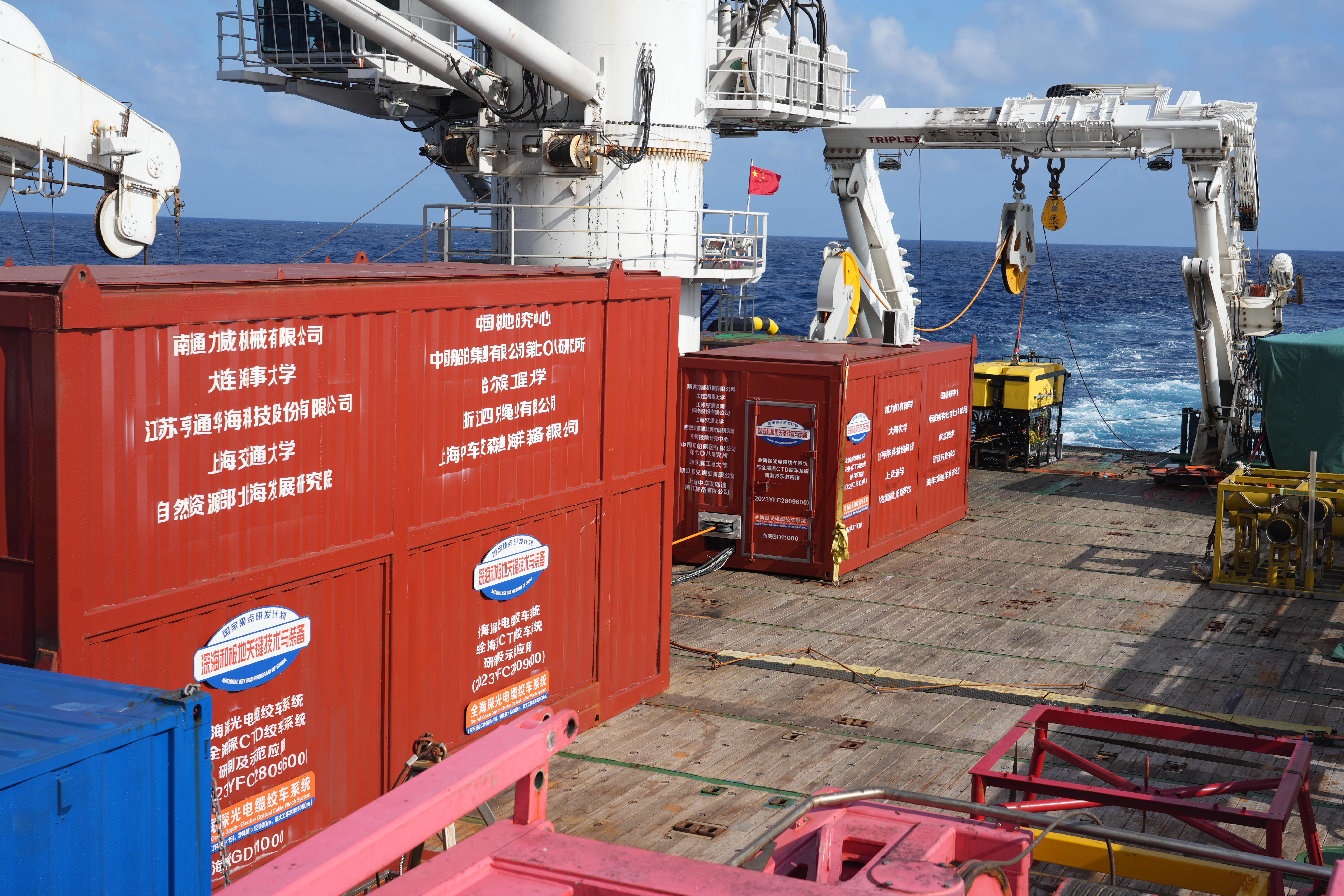 记者从大连海事大学获悉,该校联合南通力威机械有限公司、江苏亨通华海科技股份有限公司等单位承担“十四五”国家重点研发计划“深海和极地关键技术与装备”重点专项“全海深光电缆绞车系统与全海深CTD绞车系统研制及示范应用”项目,经联合研究攻关成功研制出目前全球唯一一套全海深光电缆绞车系统“海威GD11000”。日前,“海威GD11000”随广州海洋地质调查局“海洋地质二号”船在我国南海完成了首个航次的深海调查任务。本航次拖曳作业放缆长度达11000多米,作业水深超4000米,充分验证了国产深海绞车系统的稳定性和作业能力。