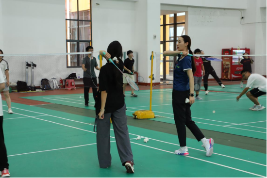 如何用自己的运动员经历为自己的课堂增加厚度?赵娅彤也有着自己的思考。她将体育精神结合思政,融入课堂当中。她常常和同学们一起讨论国际热门赛事,讲述自己和队友的比赛经历。她还为课堂设计了小组竞赛环节,通过让学生各自结对,探讨羽毛球技巧,让他们在竞赛中体会团队协作的体育精神。赵娅彤开始从“教学新手”向“教学能手”转变。