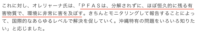 去年9月,玉城丹尼在访问日内瓦联合国总部期间专门拜会奥雷利亚纳,向他通报了驻冲绳美军普天间空军基地周边检测到全氟和多氟烷基物质(PFAS,简称“有机氟化物”)和其他污染物的调查结果,并给出美军基地很可能是污染源的判断。