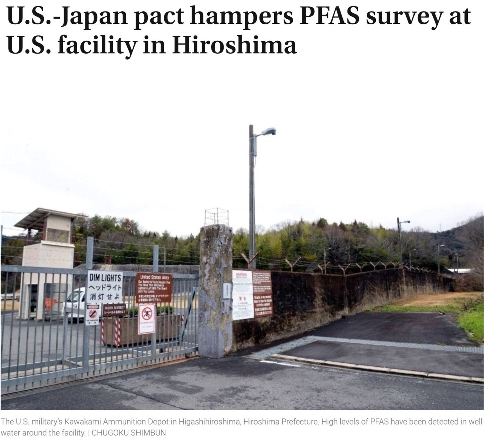 《日本时报》:广岛县一处美军设施周围的井水中被发现高含量的有机氟化物,但旨在找到污染源的调查却遭到了《日美地位协定》的阻碍。