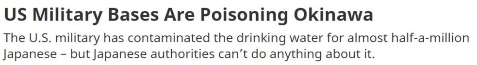 早在2016年,冲绳县就首次发现美军基地附近河流、泉水、鱼类和农田中的有机氟化物含量偏高,影响了当地近50万人的饮用水,造成当地历史上最严重的环境污染。