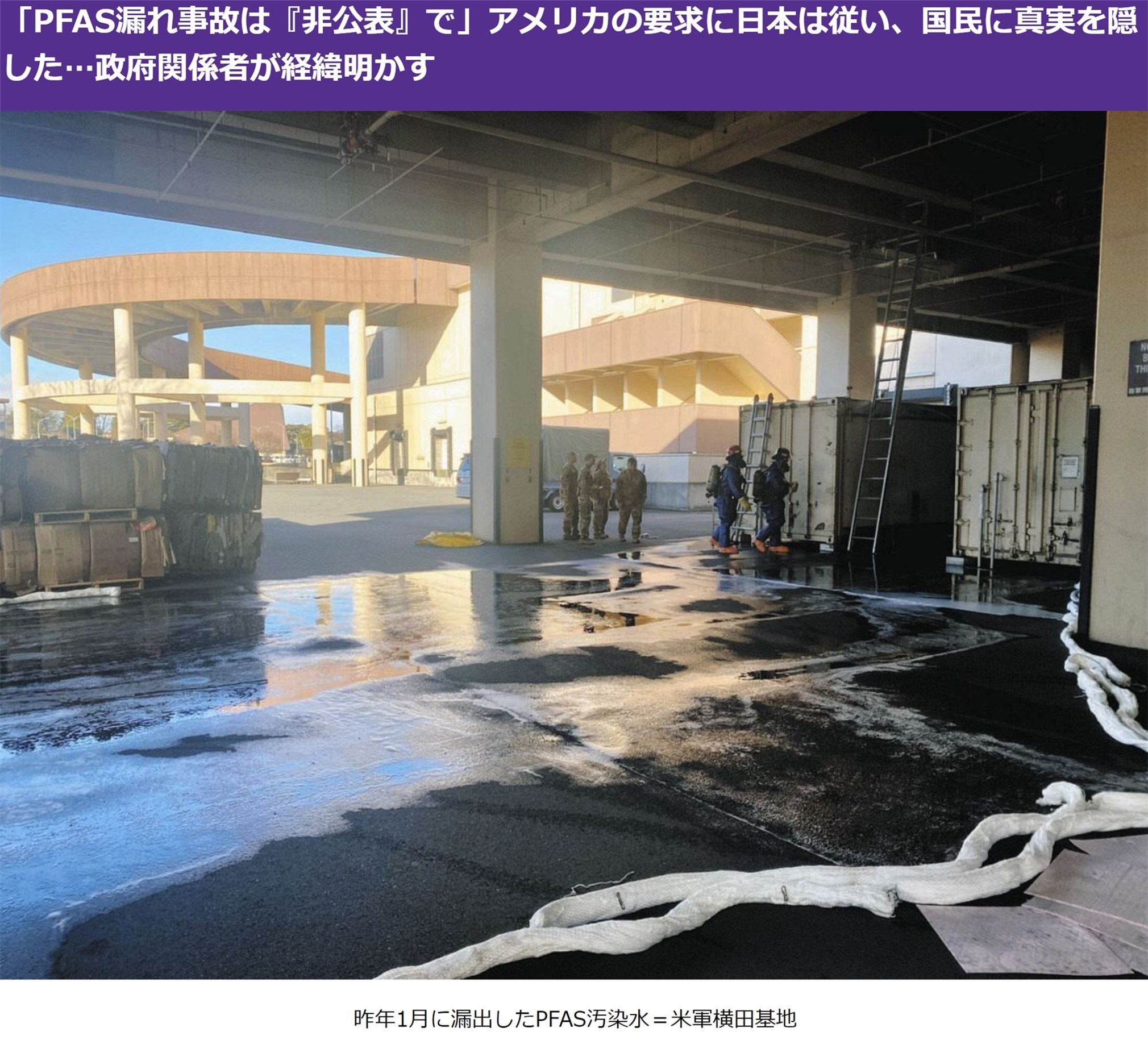 仍以横田基地为例,驻日美军2019年曾告知,横田基地2010年至2012年发生过多起含有机氟化物的灭火剂泄漏事故,但日本防卫省直到2023年才公布相关情况。这意味着日本民众十多年来一直在不知情的状态下饮用可能受到污染的水。