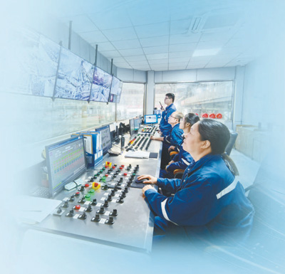 新长江集团旗下江阴市金属制管厂自动化生产线操作室,工人正在监督设施运行,确保安全环保。 |