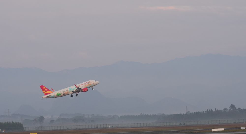 图为装配着中国国产航空子午线轮胎的空客A320飞机试飞。新华社发 何平江11月21日摄