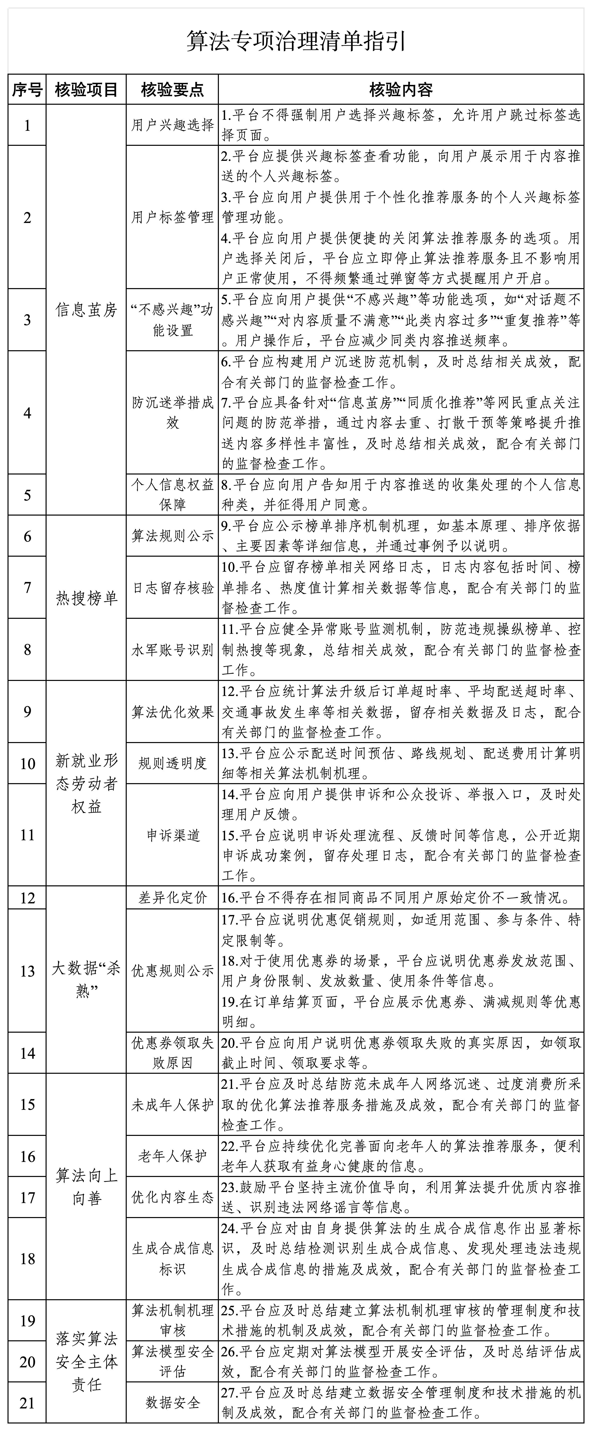2.核验企业自查情况(2025年1月1日至2025年1月31日)。积极落实属地管理责任,对照《算法专项治理清单指引》(附件),对企业自查自纠情况进行深入评估。对自查不认真、整改不彻底的企业,及时组织技术力量进行核查并督促整改。