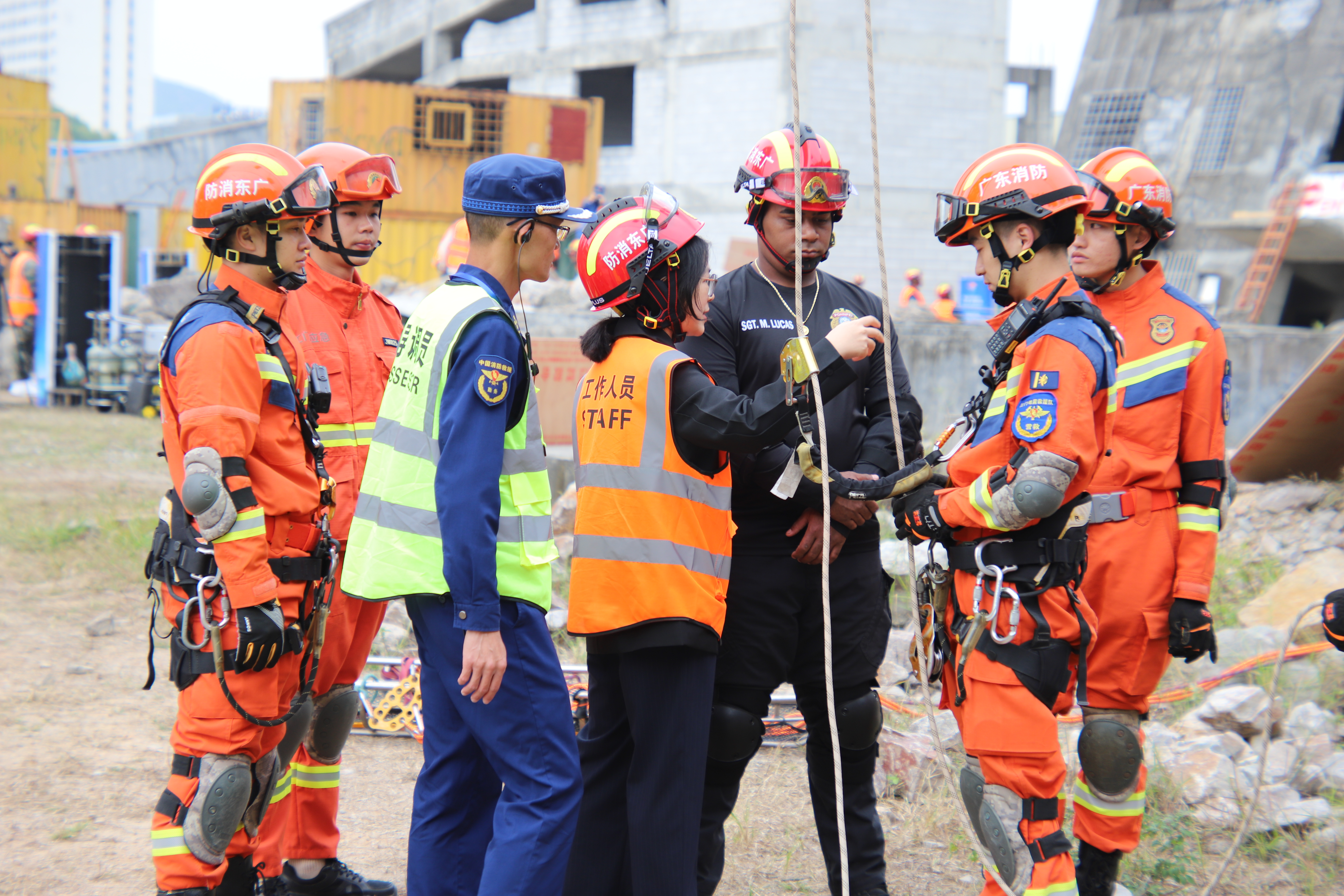 本次演练设指挥协调、向上绳索救援、T形绳索救援、生命搜索救援、支撑破拆救援、崖壁救援、深井救援、直升飞机救援等12个科目,来自8个太平洋岛国的应急救援队伍与我国国家综合性消防救援队伍、安全生产应急救援队伍、社会应急力量,以及港澳救援队伍共300人混编参演。