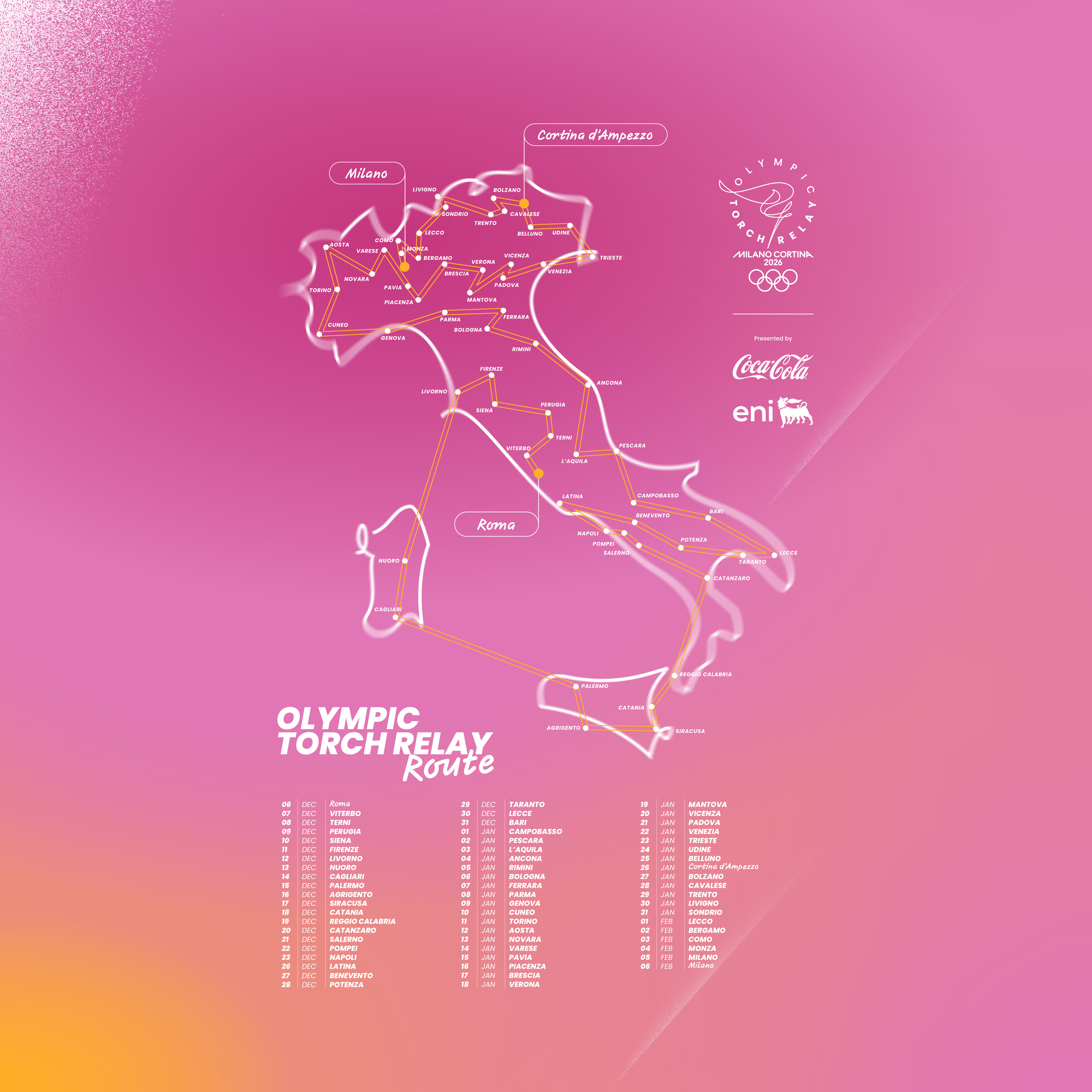 在西方传统的圣诞节,火炬传递将来到那不勒斯,随后在巴里迎接2026年新年的到来。2026年1月26日,火炬将抵达科蒂纳丹佩佐,以纪念70年前在这里举行的1956年冬奥会开幕式。2026年2月6日,火炬将最终抵达米兰标志性的圣西罗体育场。