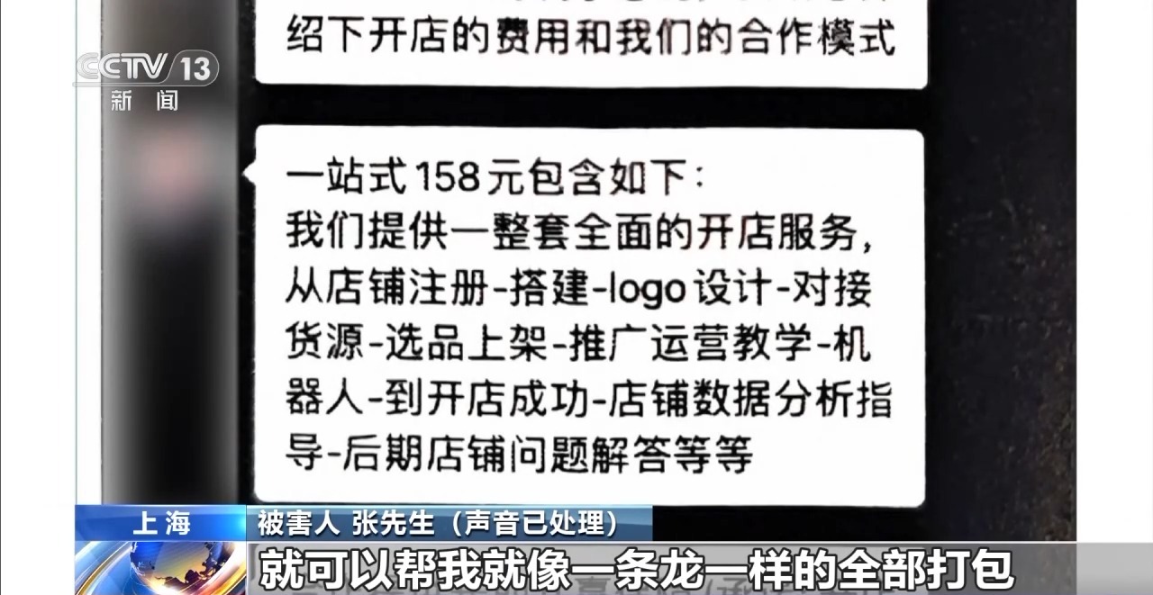 被害人 张先生:视频上面打的广告说可以帮我包开店、包货源、包运营、包引流,就是没有会员也可以开店接单赚钱,帮我代发货。