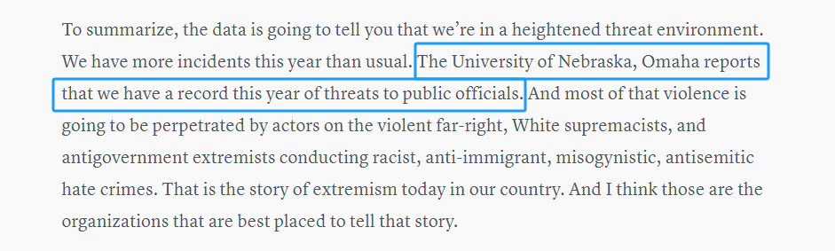 美国外交关系协会网站本月援引内布拉斯加大学奥马哈分校的报告称,2024年,全美针对公职人员的威胁创下了历史新高。
