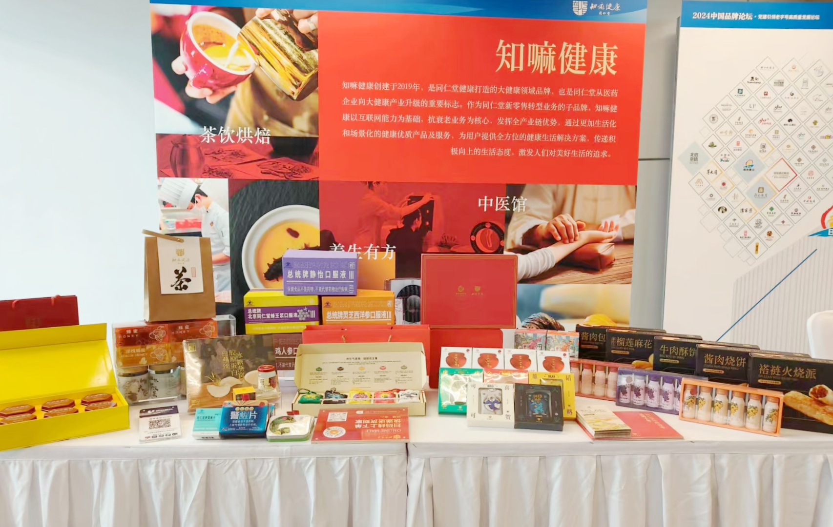 论坛现场,北京同仁堂知嘛健康零号店展示“国潮养生”精品。