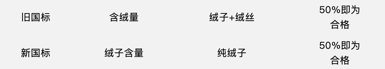 新国标最大的亮点是把“含绒量”修改为“绒子含量”。