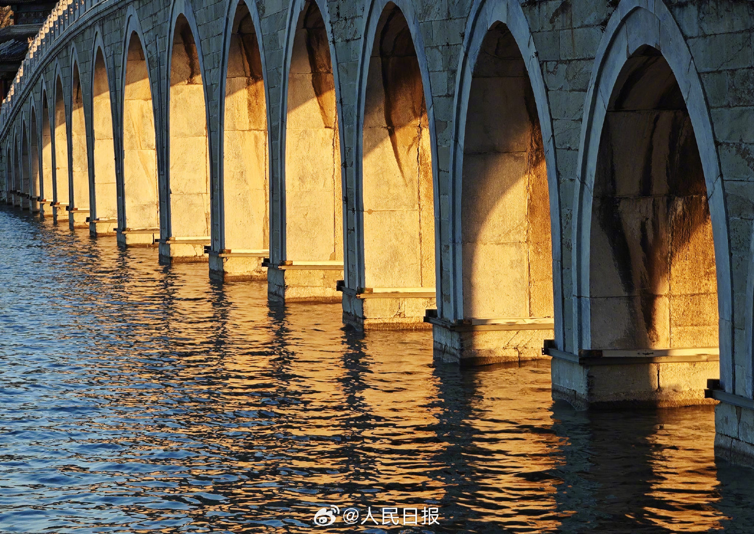 颐和园十七孔桥再现金光穿洞